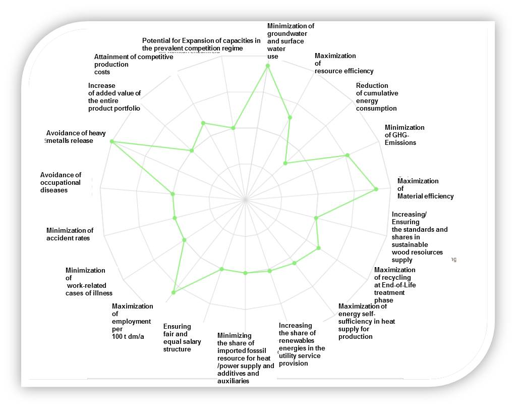 Zur Nachhaltigkeits-orientierten Unterstützung der Implementierungsplanungen derartiger industrieller Netzwerke hinsichtlich des Einsatzes von zukunfts-orientierten Lösungen aus F&E-Entwicklungsaktivitäten und technological upscaling, werden Ansätze aus der Entscheidunganalyse, der Stoffstromanalyse und der Lebenszyklus-bezogenen Nachhaltigkeitsbewertung (LCSA) in einer Methodik zur Multi-Kriteriellen Entscheidungsanalyse zusammengeführt und in der Bewertung von Entscheidungsoptionen zur zukünftigen Energie- und Stoffstromintegration angewendet.