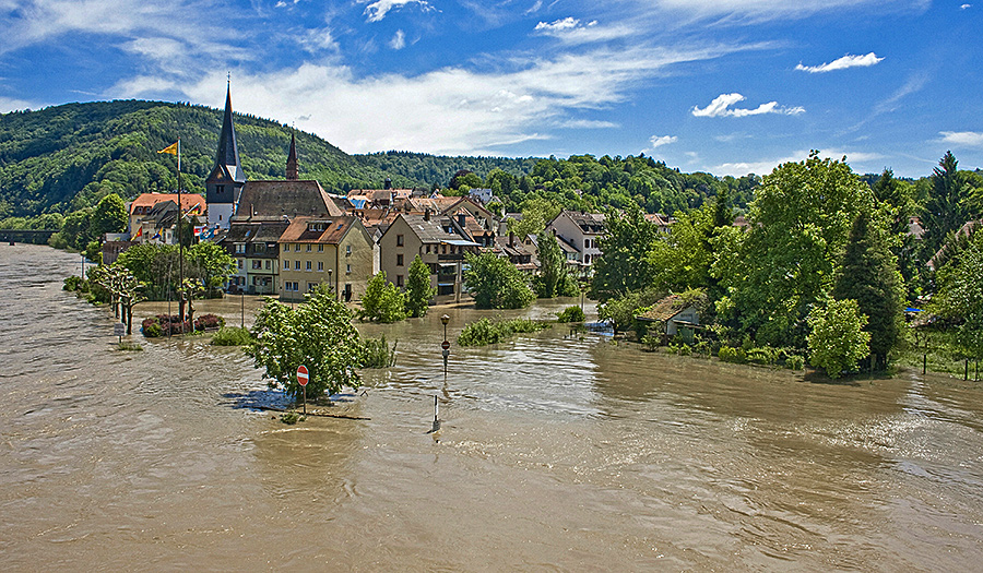 Die Auswirkungen des Klimawandels auf Flusshochwasser sind weniger eindeutig. Hier kommt es auf das Zusammenspiel von Starkniederschlag und Wassergehalt im Einzugsgebiet (z.B. im Boden und Grundwasser) an. Außerdem spielen in Gebirgsregionen die Auswirkungen des Klimawandels auf Schneefall und Schneeschmelze eine Rolle. Insgesamt werden wir aber öfter als bisher in eine Situation kommen, in der die bisherigen Schutzmaßnahmen überlastet sind.